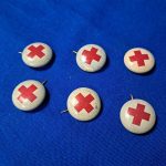 Red Cross Join sign. Condition excellent unused. These were used to sit on the front counters of general store and other locations. Large printed red cross with the graphics JOIN NOW below. Made of thin card board with “dog leg” type folding stand attached.